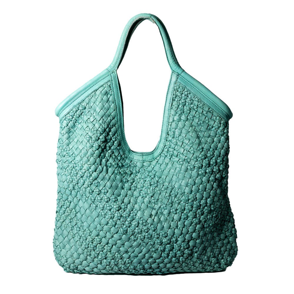 Features: 100% leather, Magnetic snap closure at top entry. 2 rolled carry handle-10” drop. Exterior features textural hand-woven leather weave and slip pocket with magnetic snap closure. Interior organizer: 4 credit card slots, slit pocket, 3 pen holders, zip pocket and 2 slip pockets Cotton Twill lining