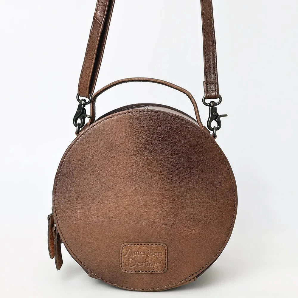 Features: Tooled leather body, 2 zipped expandable sections with plenty of room for your personal items. Will hold a wallet, keys, sunglasses, and your cellphone with room for much more. Each side has a large slide in pocket. It has 4 metal feet on the bottom to keep your bag clean. It features an adjustable or removable crossbody strap. You can change the strap out for another strap choice.